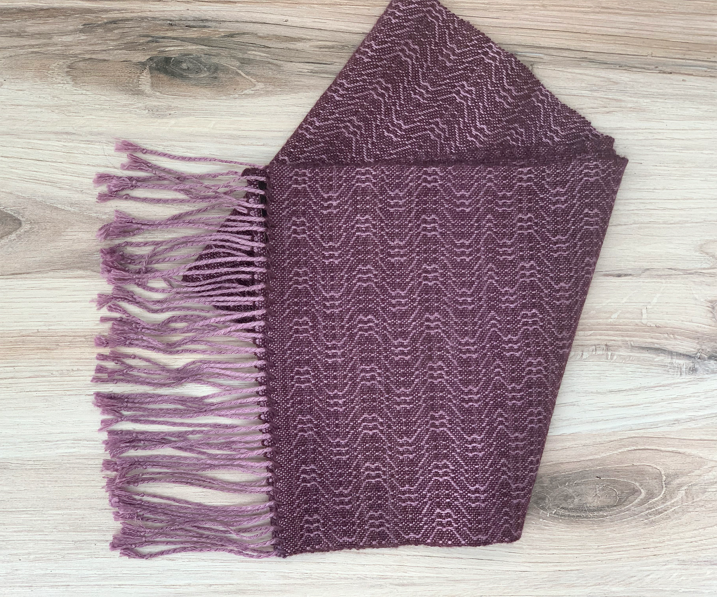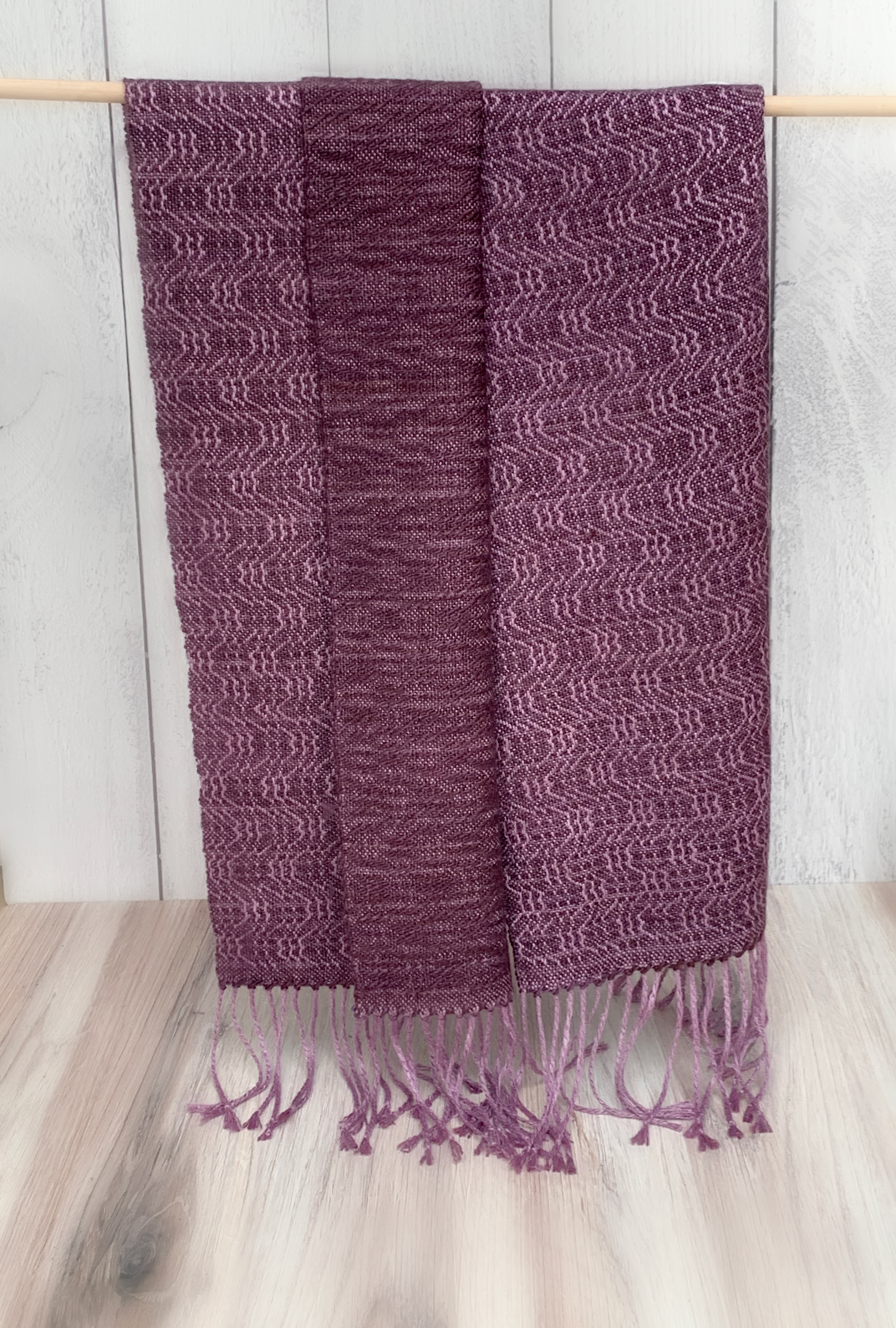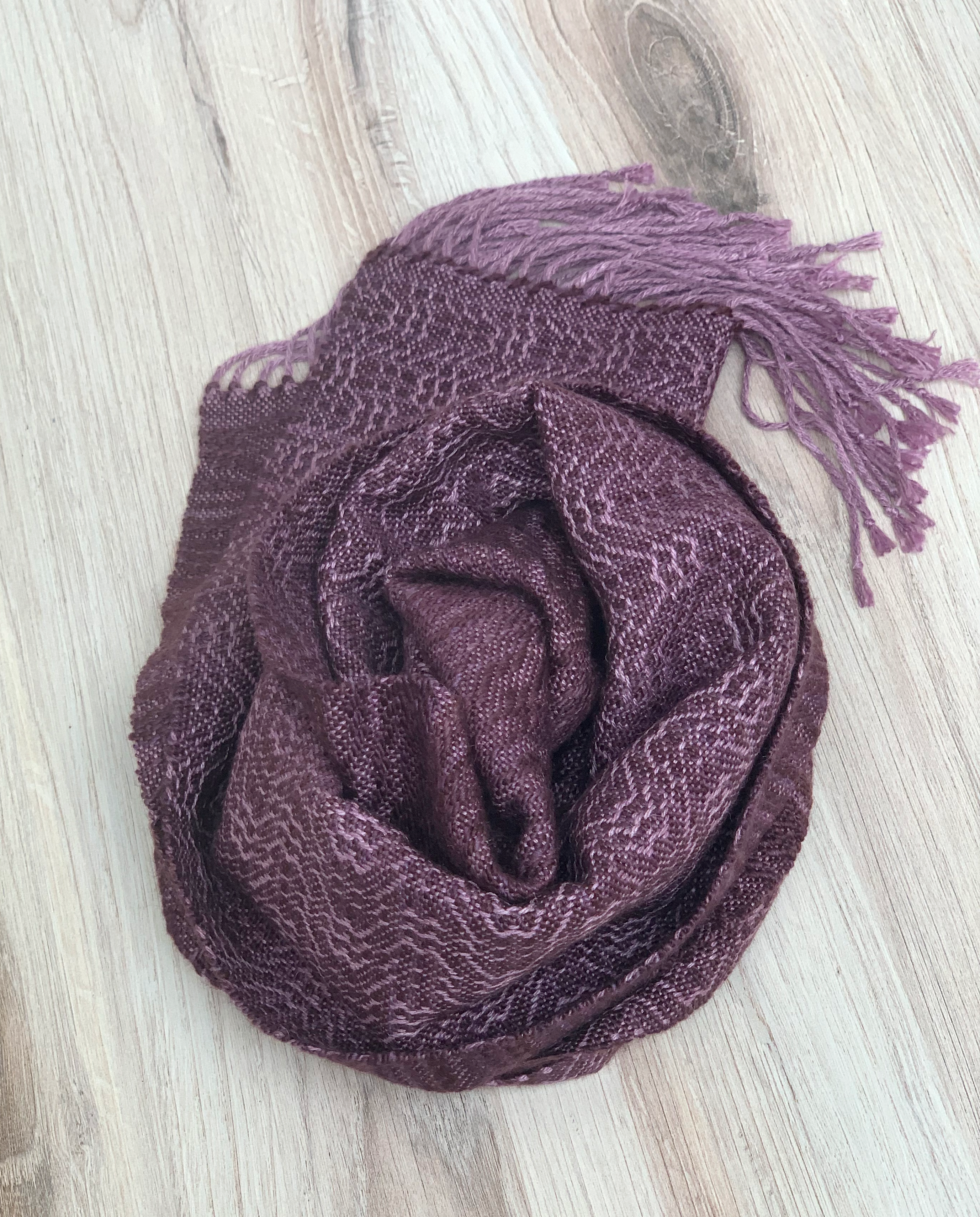 Our Amethyst Turned Twill scarf is made of luscious tussah silk and untreated Mohair. the deep rich purples of this hand-spun mohair/silk combine with delicate soft Lilac tussah silk for a luxuriously soft scarf that is reversible.