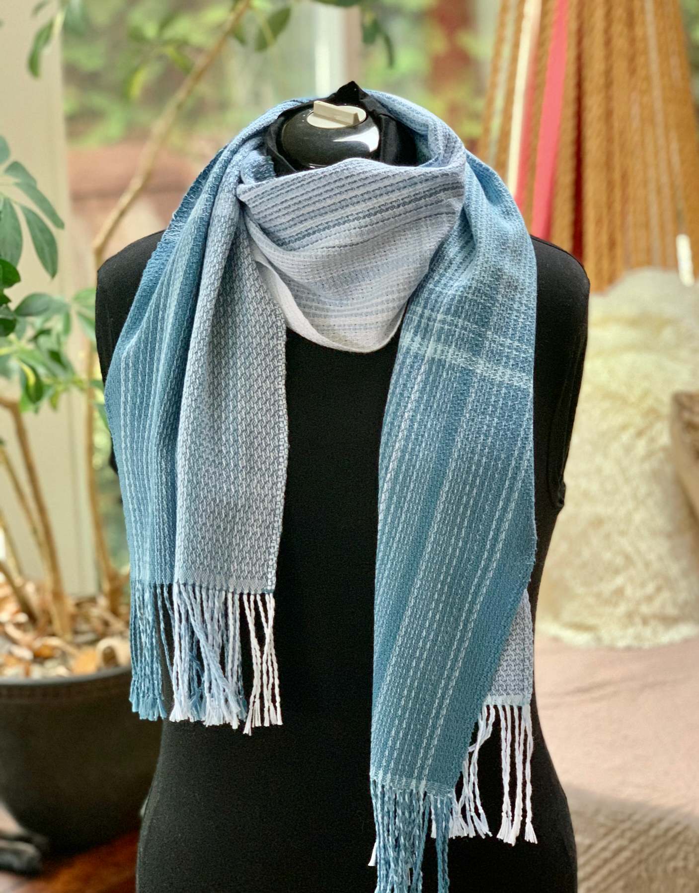 The Blue Skies Gradient Cotton Scarf is made from all organic cotton in hues of summer skies. Blue, light blue, and natural combine in a two way gradient for a light weight summer scarf that will make you think of summer skies. The Blue Skies gradient scarf is part of our Luxe Threads collection, which is sourced from artisan hand-spun fine threads, lovingly produced in small quantities.