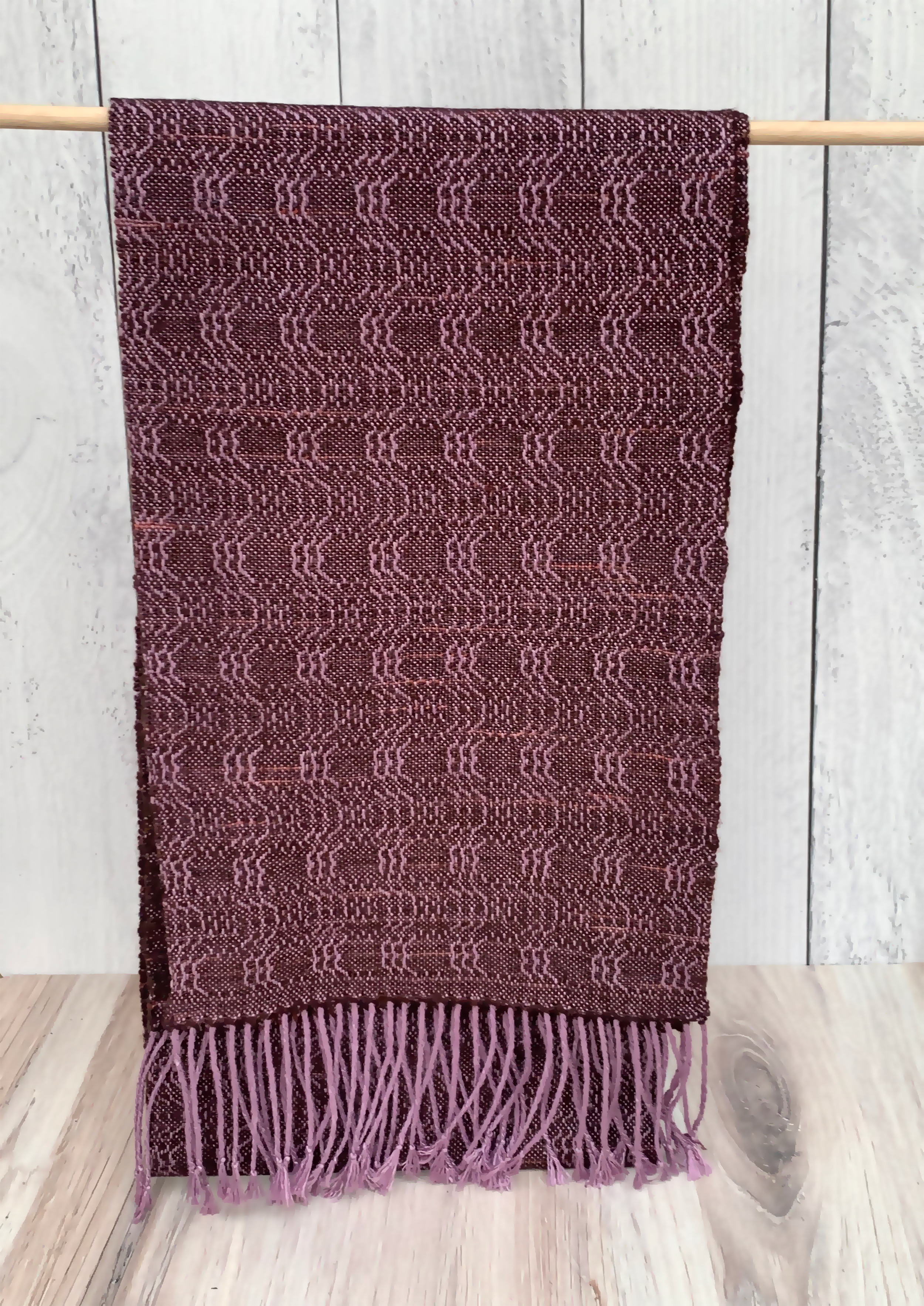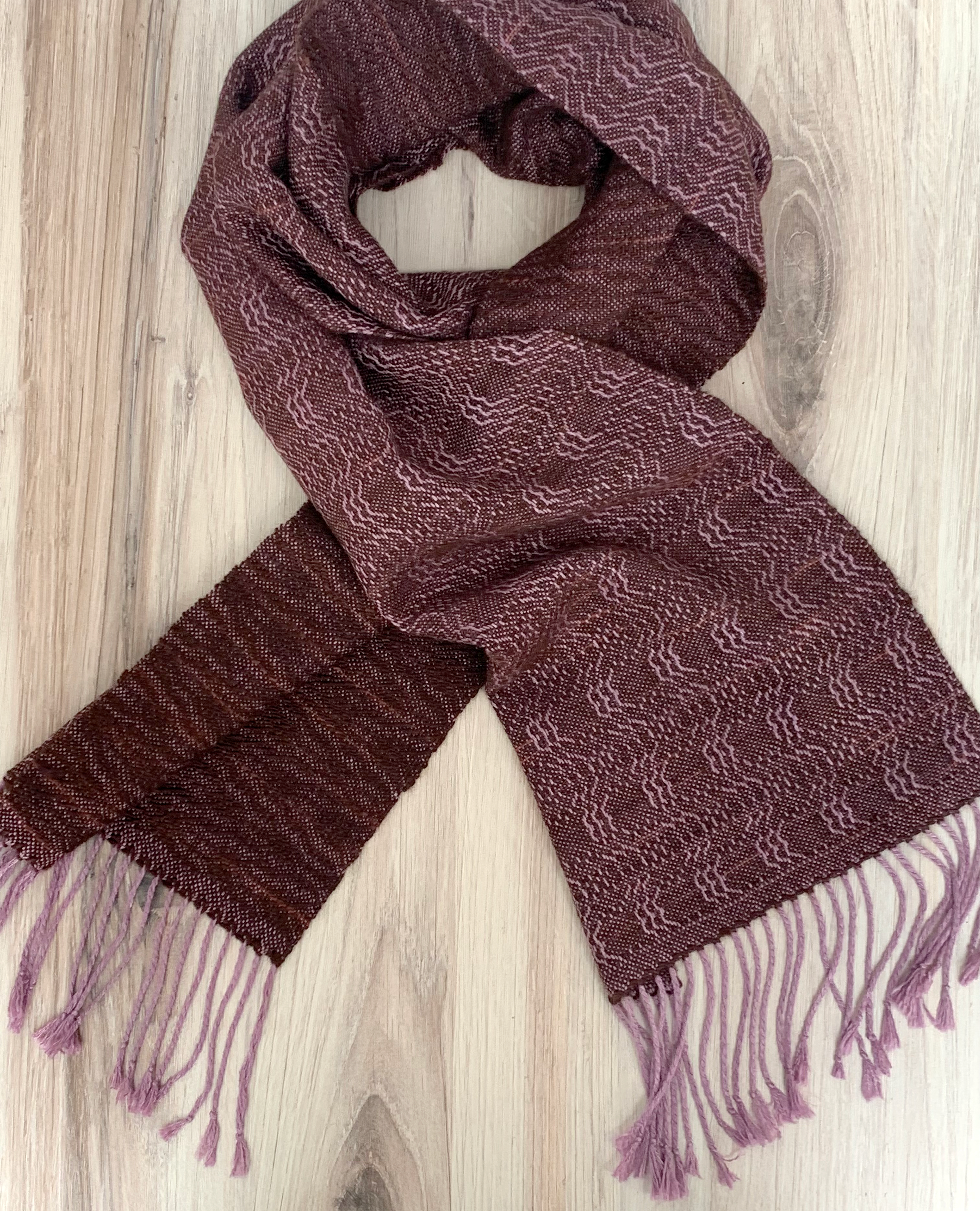 Our Chocolate Turned Twill scarf is made of luscious tussah silk and untreated Mohair. The deep rich purples of this hand-spun mohair/silk combine with delicate soft Lilac tussah silk for a luxuriously soft scarf that is reversible.